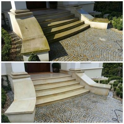 Sztandarową usługą naszej firmy jest renowacja, czyszczenie i impregnacja każdego kamienia naturalnego. Do czyszczenia ciężkich zabrudzenia w kamieniu i na jego powierzchni używamy odpowiednich środków chemicznych i maszyn o odpowiednio wyregulowanej mocy w zależności od rodzaju kamienia tak aby nie uszkodzić jego struktury. Podczas usuwania zabrudzeń w głębi kamienia musimy ściągnąć nałożony wcześniej impregnat przy pomocy środków chemicznych. Następnie przy pomocy gorącej wody i detergentu obniżamy napięcie powierzchniowe, które pozwala nam wyczyścić zaistniałe zabrudzenia. Po tych czynnościach należy dokładne zaimpregnowanie materiał w zależności od jego chłonności. Posiadamy jeden z najlepszych impregnatów pogłębiający kolor kamienia na rynku! Zaletą jest długotrwałość jego działania w przeciwieństwie do innych ogólno dostępnych.
