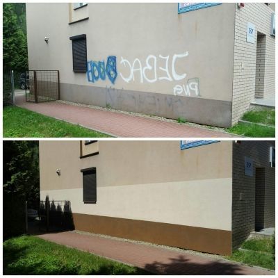 Nasza firma zajmuje się usuwaniem aktów wandalizmu (Graffiti) z budynków prywatnych jak i użytku publicznego. Graffiti usuwane jest przy użyciu specjalistycznych systemów i preparatów nieuszkadzających powierzchnię. Doprowadzamy całkowicie materiał do stanu z przed zniszczenia a preparaty nie zagrażają środowisku. Usługa wykonywana jest przy użyciu niezależnych maszyn wodnych lub granulatowych. Usuniemy graffiti z każdej powierzchni.